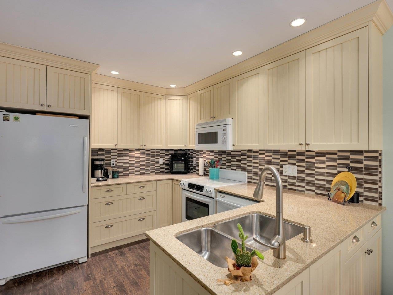 Welcome to this BEAUTIFUL end unit rancher in the highly sought after Garden Estates with nobody above you! This lovely home offers 1423 sq ft of living space with 2 large bedrooms and a den and two full 4pc updated bathrooms. Many other recent updates include a gourmet kitchen with guartz countertops, newer flooring, and designer paint. You will enjoy the cozy living boasting a new gas fireplace and formal dining room for entertaining. Spacious kitchen and eating area open to a nice private huge backyard area with patio area perfect for enjoying sunny days. Single car garage and a second open parking stall. This is the absolute perfect home in a great area. Close access to transit, recreation center, shopping, restaurants and much more. Don’t wait on this one, it will go fast!!!!